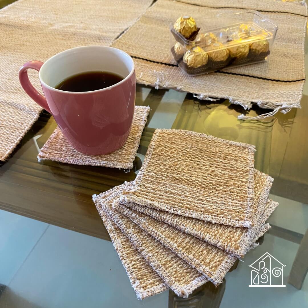 Natural Jute Coaster Set - Square